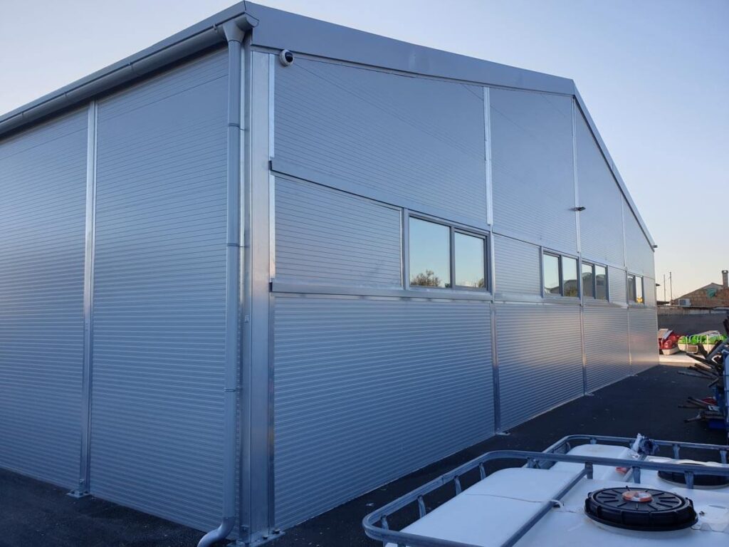 Vedno, kadar želje in zahteve presegajo zmožnosti industrijskih šotorov, običajno je to proizvodnja, servisi, montaže, poslovni prostori in drugi nameni uporabe, je naslednja stopnja hitromontažna hala, ki je lahko izolirana ali neizolirana. Hitromontažna hala omogoča hitro postavitev in uporabo, toplotno izolacijo, povišano tehnično varnost, poenostavljene birokracijske postopke ter predvsem ugodno ceno in mobilnost oziroma možnost prilagoditev na kasnejše druge prostorske pogoje in zahteve.